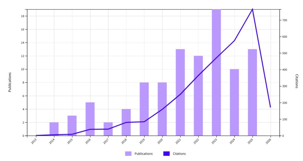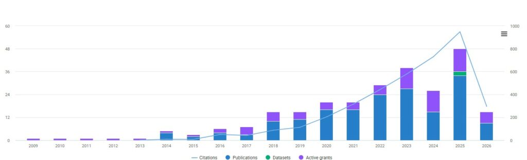 Research activity and citations from Dimensions tool (7th of March, 2026):